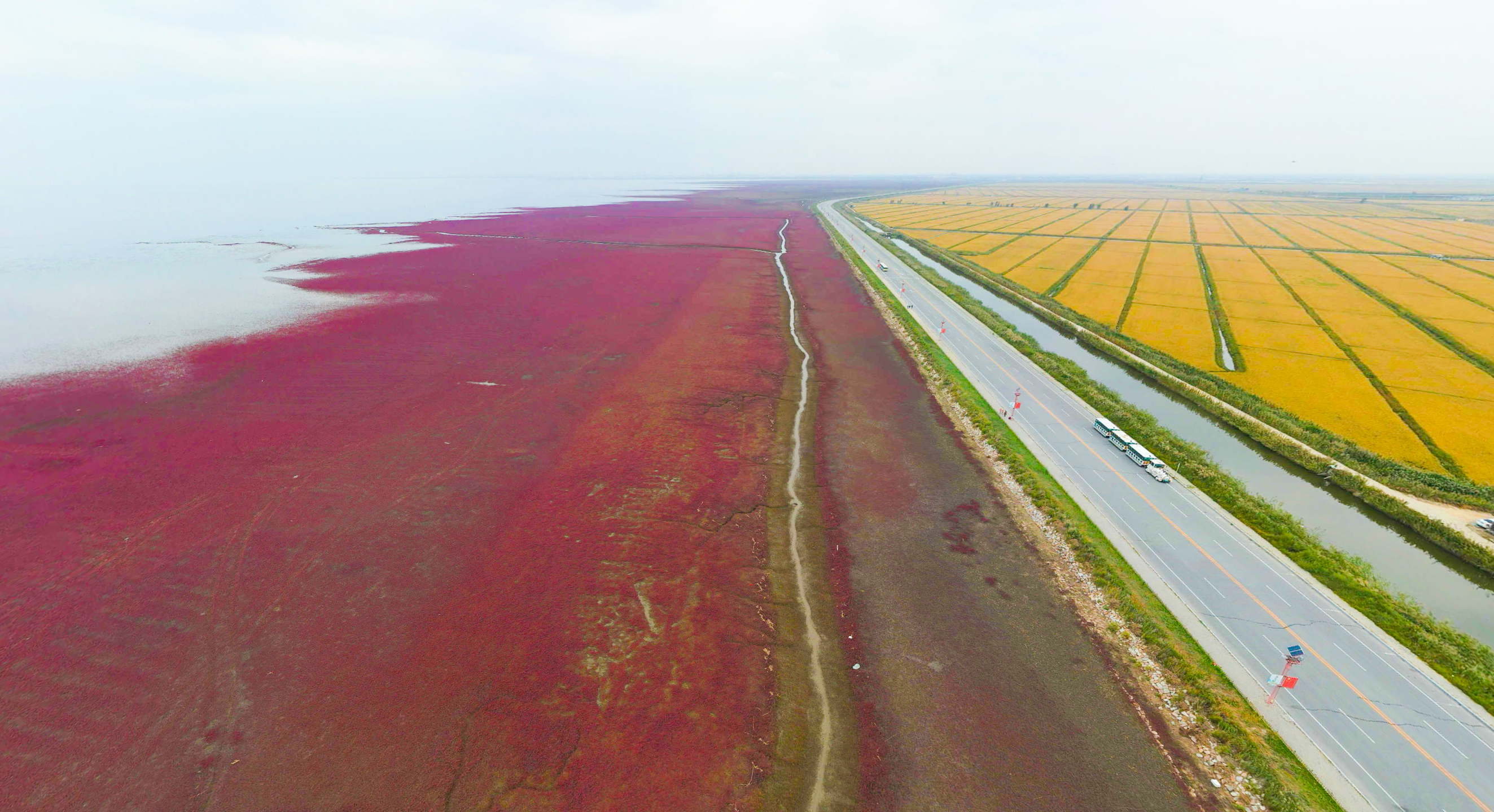 這里的紅色海岸線,也被評(píng)為“中國(guó)最精彩的休閑廊道”“中國(guó)最浪漫的戶外游憩海岸線”。每年四月,紅海灘初為嫩紅色,隨后漸次轉(zhuǎn)深。到十月,海灘又由紅變紫。最佳觀賞時(shí)間為每年五月至十月。這里稻米飄香,海鷗、丹頂鶴飛翔。