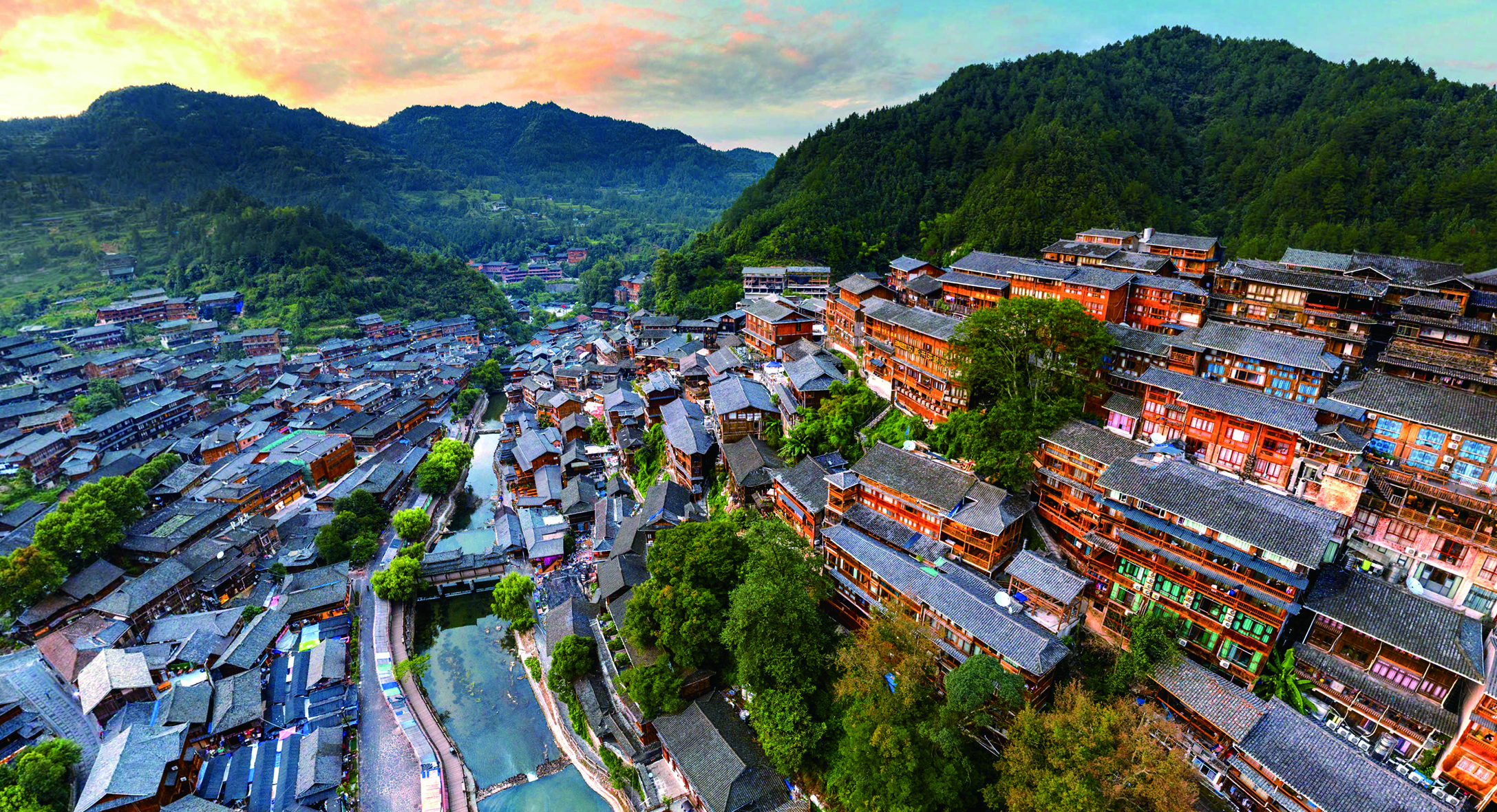 “觀西江而知天下苗寨”。這是全世界最大的苗族聚居村寨,由5個(gè)依山而建的自然村寨相連而成。高差近百米的峽谷內(nèi),鱗次櫛比地分布著數(shù)千座吊腳樓。