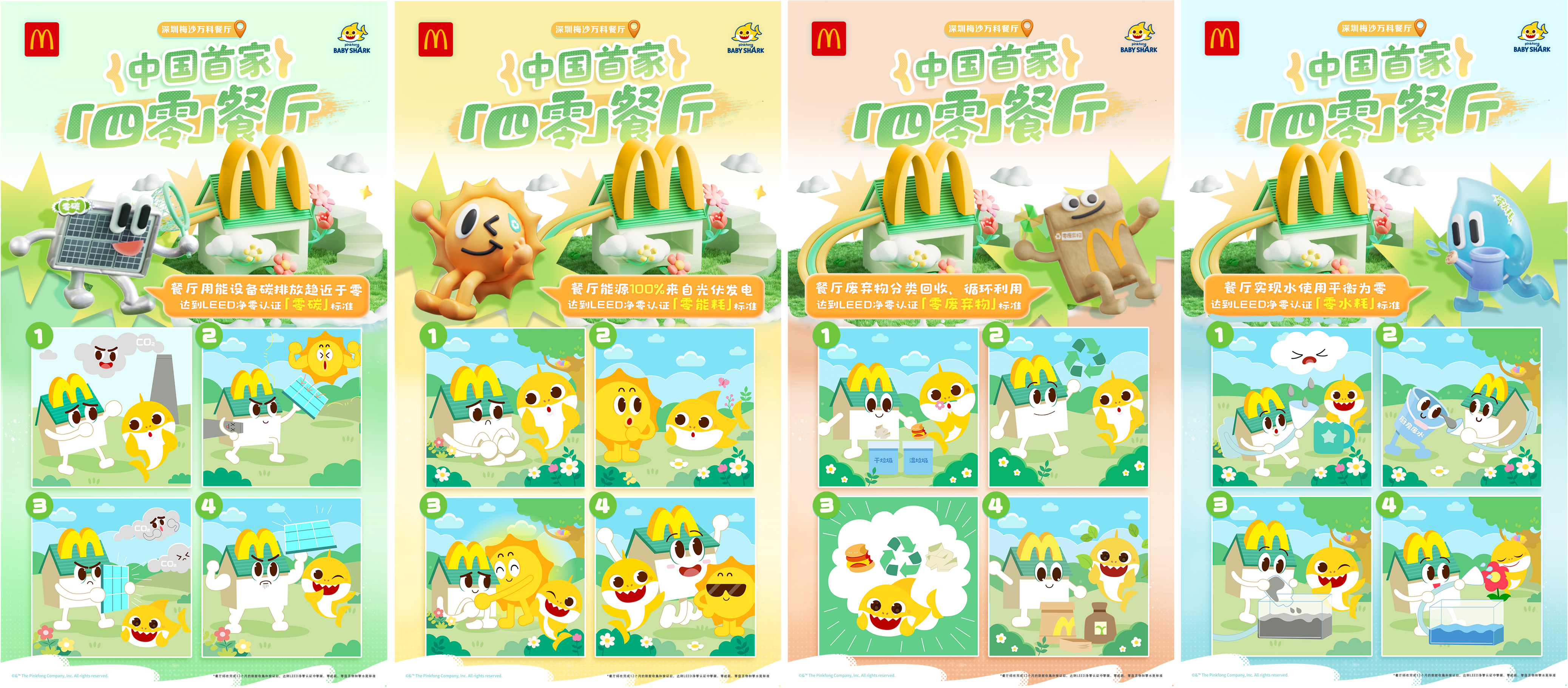 即日起,《麥當(dāng)勞綠色餐廳之歌》將在麥當(dāng)勞中國(guó)超6500家餐廳播放,該歌曲改編自《Baby Shark Dance(鯊魚寶寶體操)》這一風(fēng)靡全球的經(jīng)典曲目。膾炙人口的旋律、輕松可愛的歌詞,麥當(dāng)勞邀請(qǐng)全國(guó)消費(fèi)者一起,共同表達(dá)對(duì)地球的熱愛。麥當(dāng)勞中國(guó)還與鯊魚寶寶(Baby Shark)共創(chuàng)科普漫畫,解析“四零”概念,分享深圳“四零餐廳”的綠色運(yùn)營(yíng)模式。
