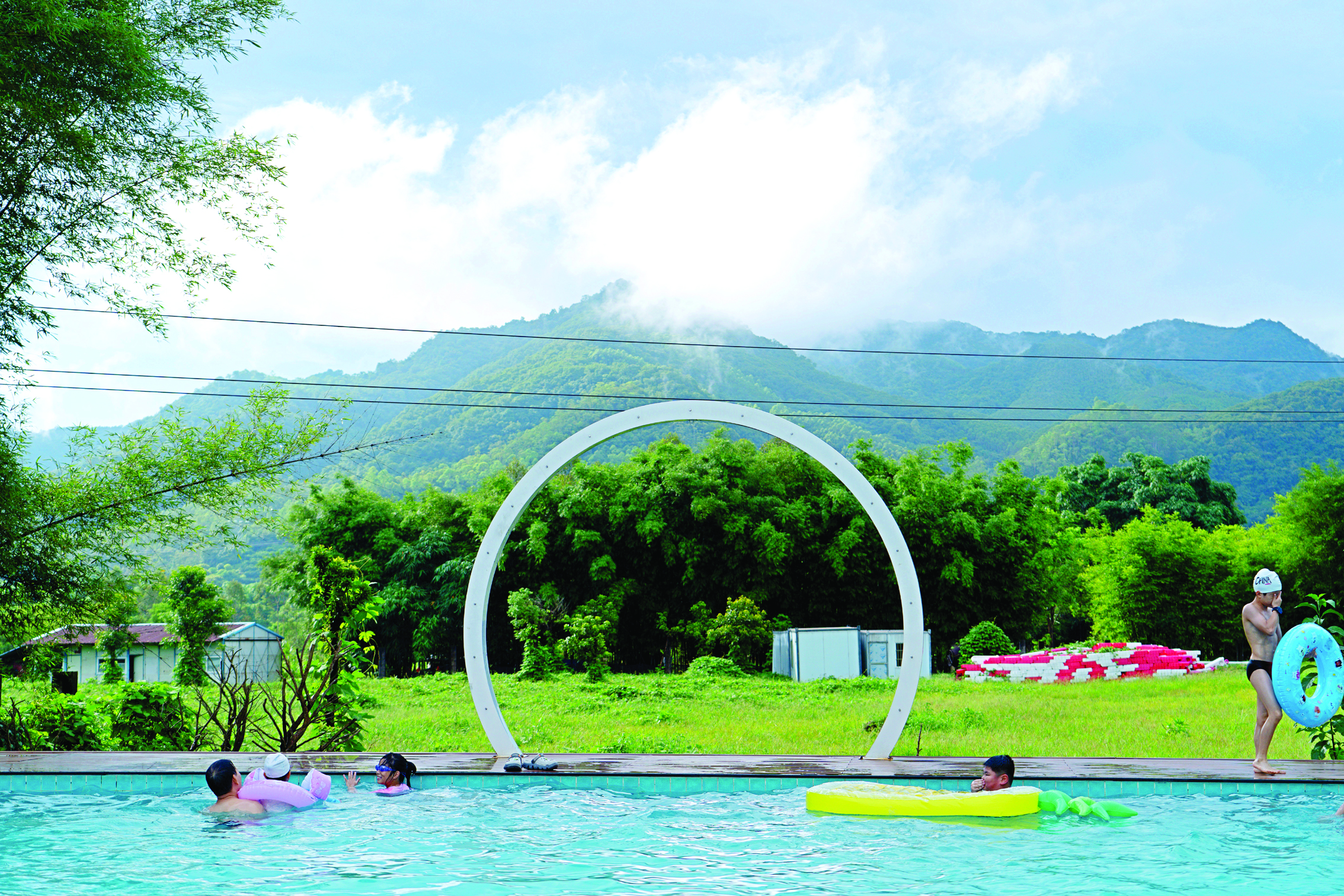 游客在龍華鎮(zhèn)的民宿嬉水游玩;葜輺|江圖片社供圖