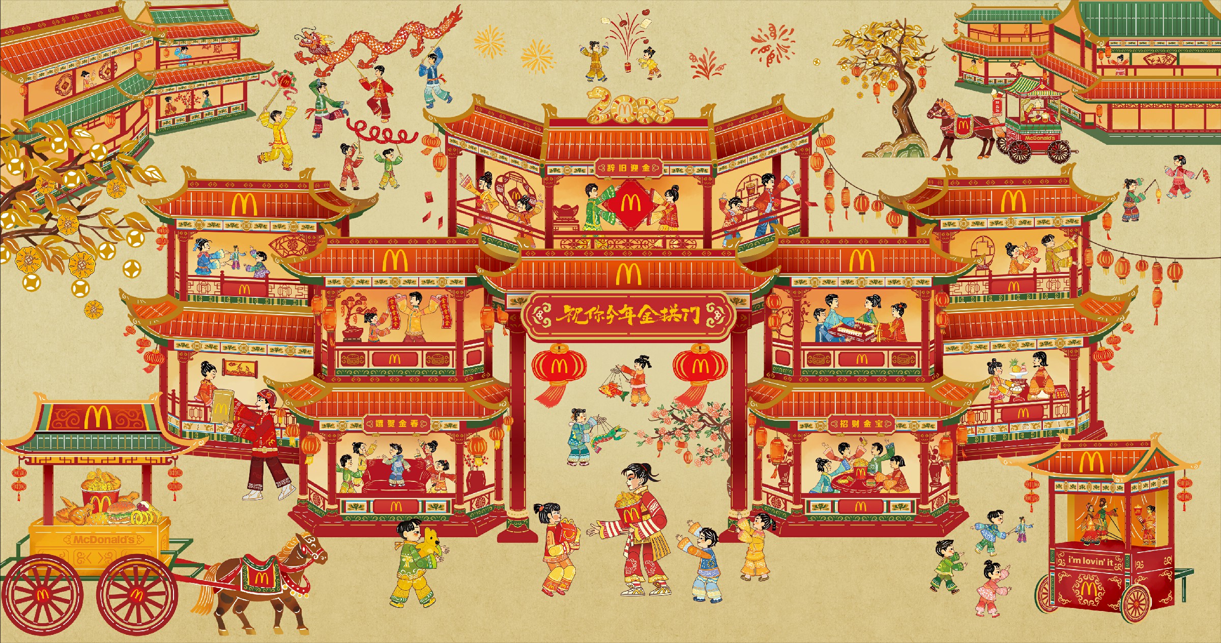 此外,麥當勞中國還在多個城市打造了多樣化的傳統(tǒng)藝術沉浸式體驗,在上海、西安和福州三城的傳統(tǒng)文化地標,特別呈現(xiàn)以皮影戲閣為靈感的“金拱門戲閣”,每日帶來窗閣彈奏表演,展現(xiàn)傳統(tǒng)曲藝的獨特魅力。同時,在南京秦淮河上打造“金拱門戲舟”,將水上畫舫與傳統(tǒng)曲藝表演相結合,為消費者帶來別樣的非遺文化視聽盛宴。麥當勞中國還在南京、廣州、福州和天津四城設置了“金拱門戲街小站”,深入花街集市,為市民和游客送上驚喜互動,為城市增添年味。