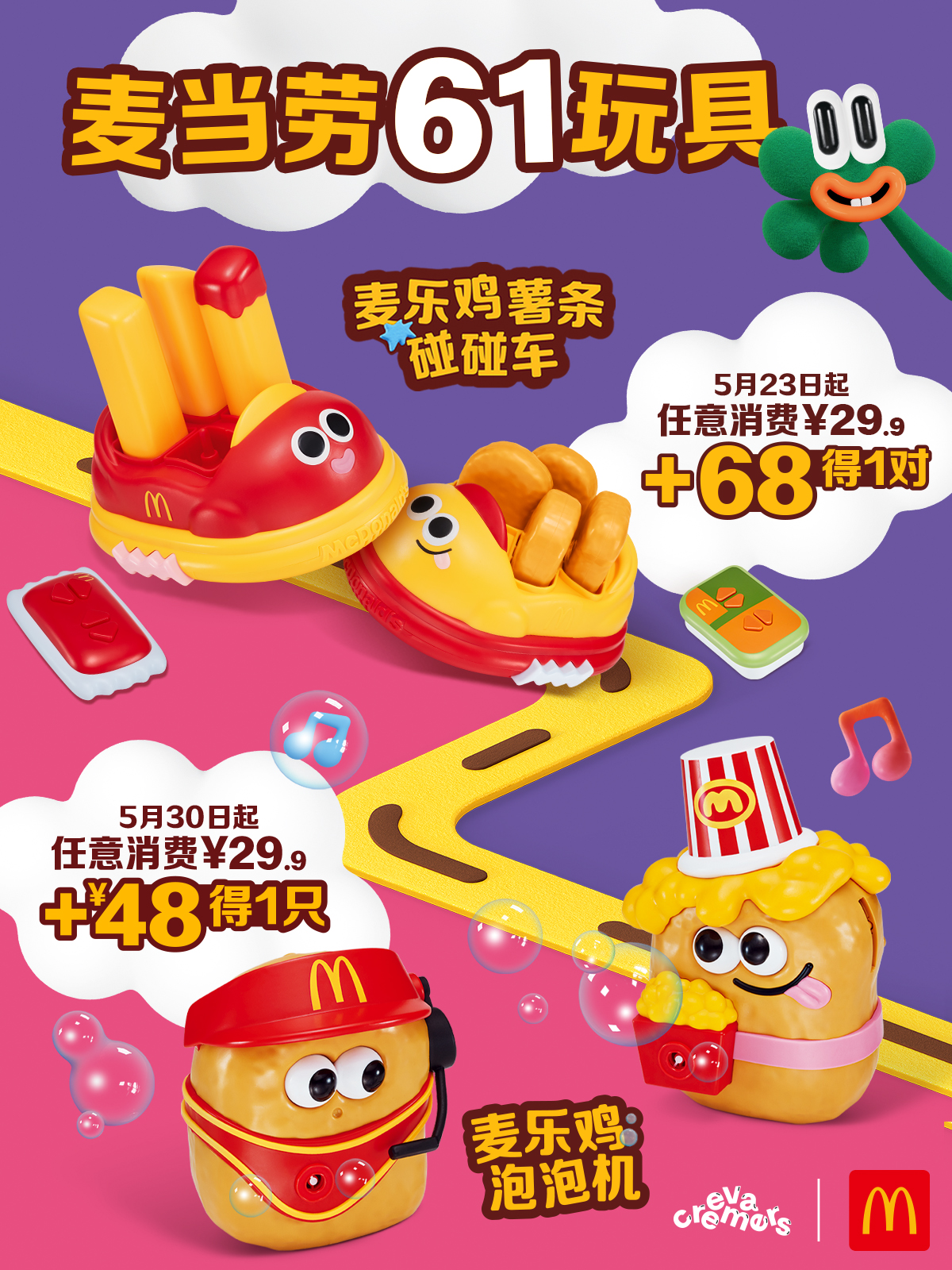 麥當(dāng)勞推出六一兒童節(jié)玩具周邊“麥樂雞薯條碰碰車”和“麥樂雞泡泡機”