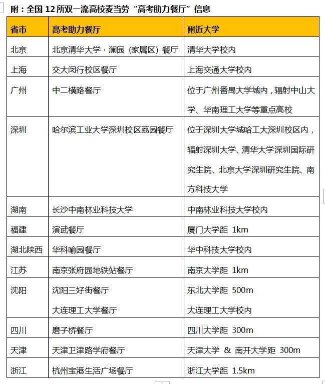 高考期間,全國12所雙一流高校的麥當勞餐廳將打造為“高考助力餐廳”傳遞滿分祝福