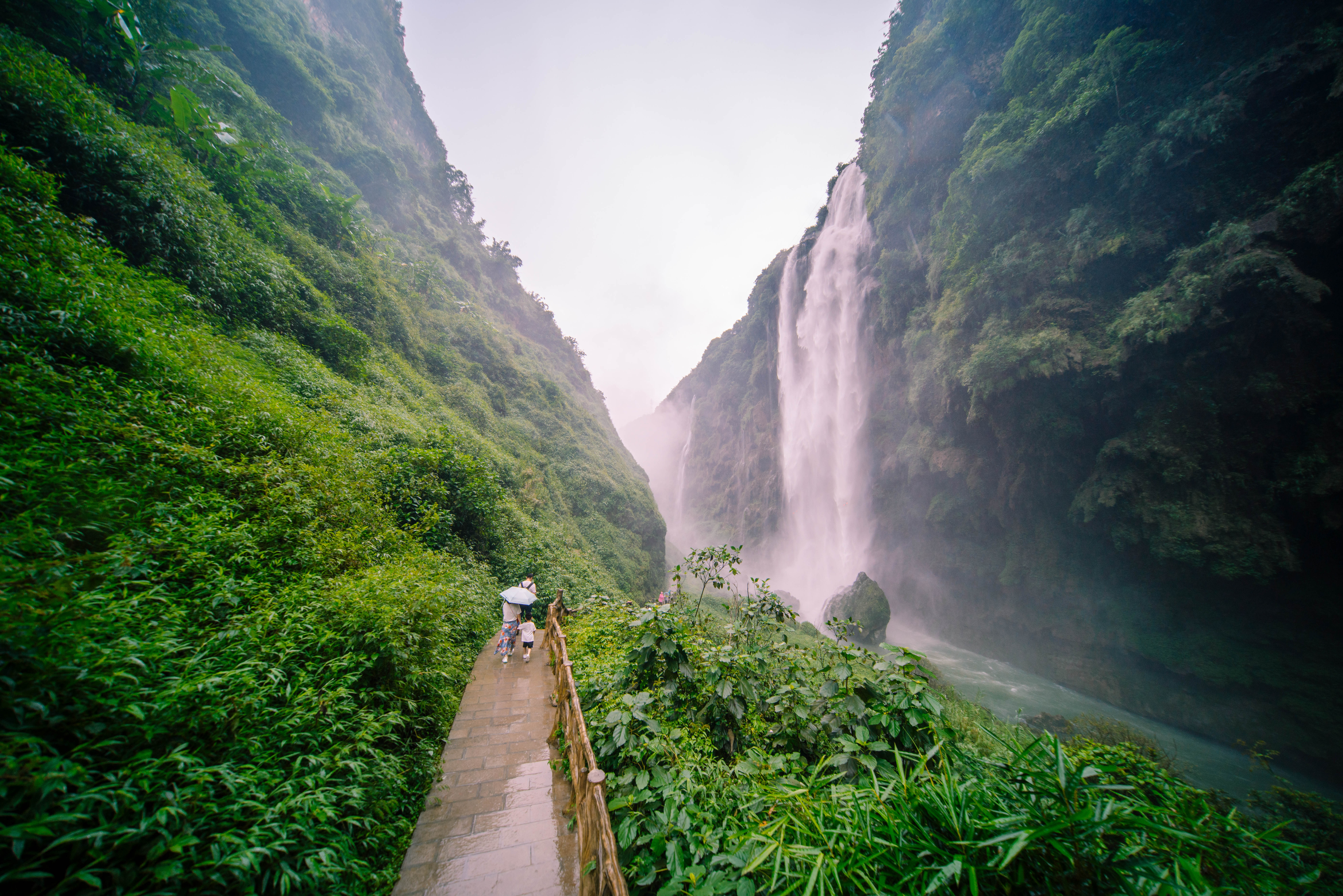 “地球上最美麗的傷痕”以百米落差切割高原,七十余條瀑布如銀練垂懸。走過(guò)玻璃觀景臺(tái),看馬嶺河在腳下奔騰成翡翠色激流。最震撼的當(dāng)數(shù)雨后的瀑布群,水霧中浮現(xiàn)的彩虹,仿佛為峽谷架起了一座通往仙境的橋梁。