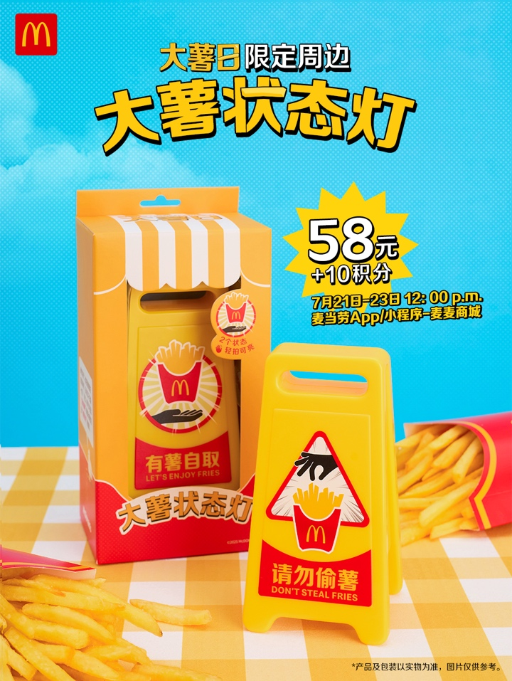 麥當(dāng)勞中國(guó)以粉絲共鳴為靈感,打造提升吃薯?xiàng)l儀式感周邊“大薯狀態(tài)燈”