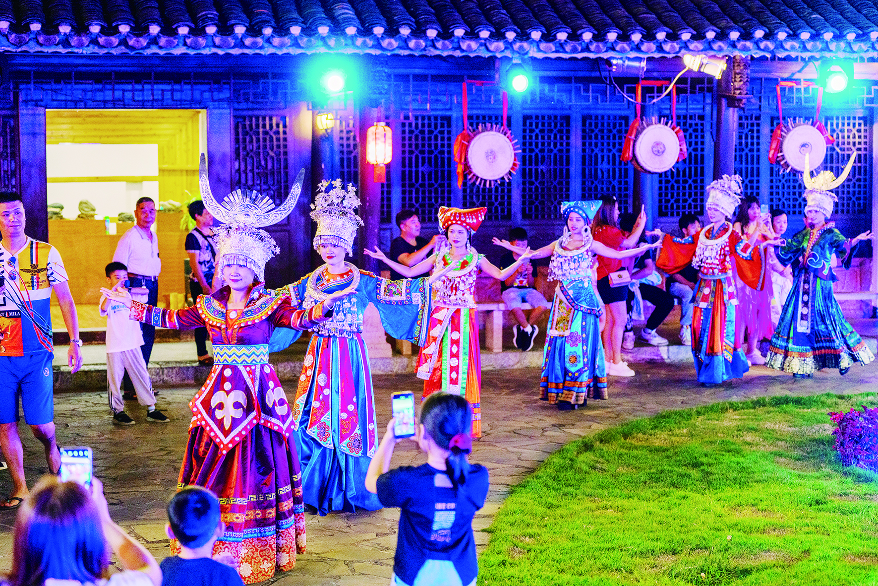 苗寨內起舞的苗家姑娘。