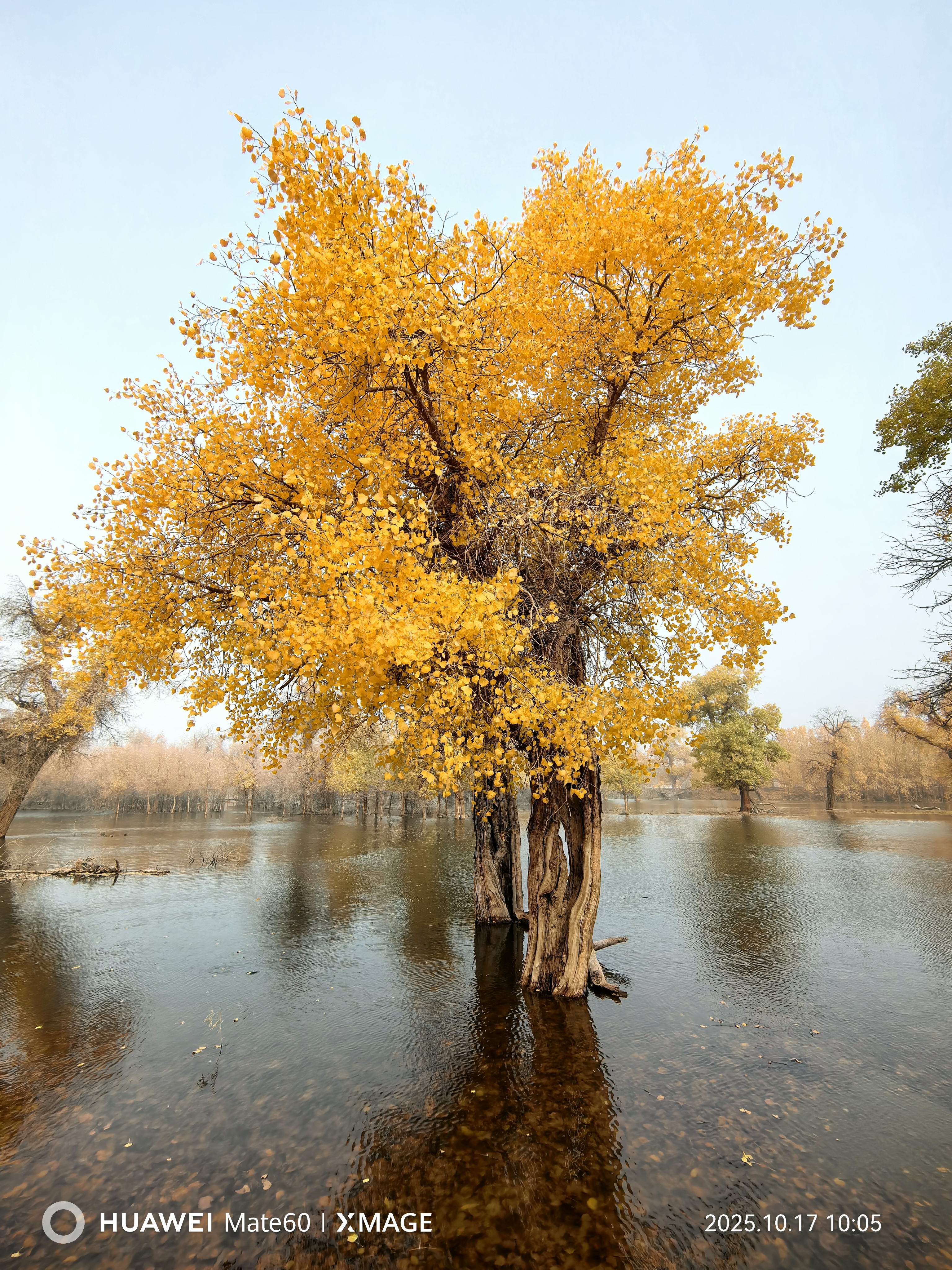 額濟(jì)納水中胡楊樹。