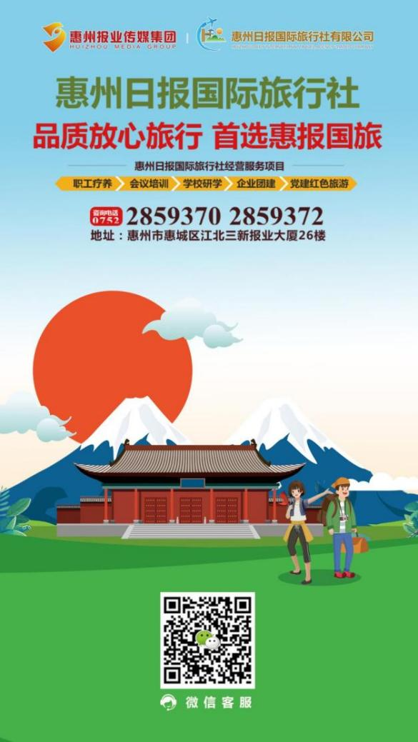 依托惠州報業(yè)傳媒集團強大的宣傳平臺和組織策劃能力,全力打造“媒體+旅游”的新平臺,為游客提供始終如一的誠信、優(yōu)質(zhì)、超值的旅游服務(wù)。