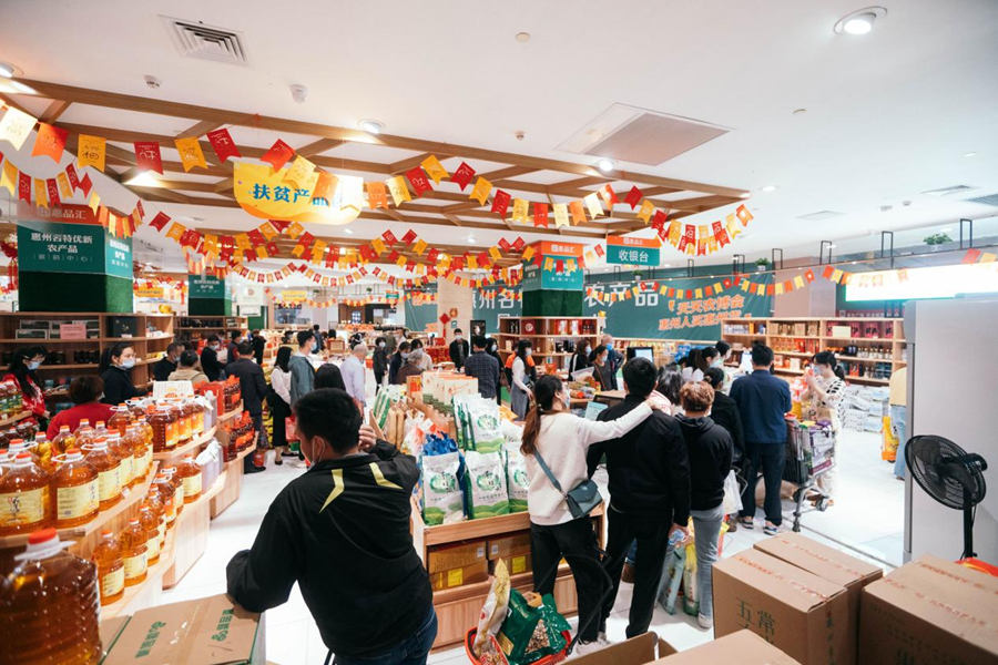 惠州名特優(yōu)新農(nóng)產(chǎn)品展銷中心位于惠州市區(qū)江北核心商業(yè)區(qū),由惠州市農(nóng)業(yè)農(nóng)村局、惠州市鄉(xiāng)村振興局主辦,惠州報業(yè)傳媒集團承辦。展銷中心于2020年6月30日正式開業(yè),并與“惠品匯”消費幫扶電商平臺緊密結(jié)合,對全市的扶貧名優(yōu)特新產(chǎn)品進行線上+線下集中展銷,是展銷全市七個縣區(qū)名優(yōu)農(nóng)特產(chǎn)品最集中、最全面的平臺,于2020年底被授予“廣東省消費扶貧創(chuàng)業(yè)創(chuàng)新基地(惠州)稱號”。目前,展銷中心已上架銷售來自惠州、東西部協(xié)作幫扶農(nóng)特產(chǎn)品超過1800種,自開業(yè)以來農(nóng)特產(chǎn)品銷售額逾千萬元,為脫貧攻堅、鄉(xiāng)村振興注入了強勁的內(nèi)生動力。今年,展銷中心陸續(xù)加掛了“惠州手信旗艦店”、“惠州鄉(xiāng)村振興農(nóng)產(chǎn)品展銷中心”牌匾。同時,展銷中心也于2021年6月新建了“黔西南州農(nóng)產(chǎn)品惠州直營旗艦店”專區(qū),全面推進惠州與貴州省黔西南州的協(xié)作,目前已上架銷售黔西南州近3百款特色名優(yōu)農(nóng)產(chǎn)品。擬通過黔西南專館的建設(shè),健全幫扶機制、完善幫扶舉措,為黔西南州鞏固拓展脫貧攻堅成果、惠州全面推進鄉(xiāng)村振興貢獻更大的力量。